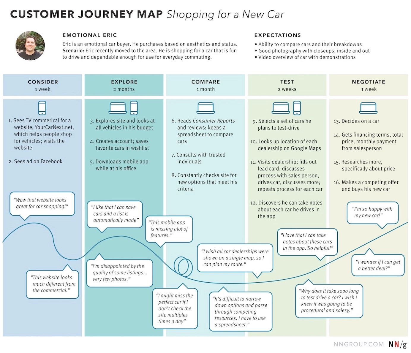 - Verbatims : Intégrez des phrases réelles issues de votre recherche utilisateur pour humaniser le parcours.